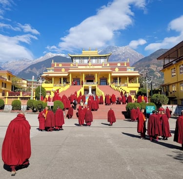 Gyuto Tantrik Monastry - The Gyuto Monastery is one of the most famous monasteries and specializes in the study of Tantric meditation, Tantric ritual arts, and Buddhist philosophy. It is the abode of Karmapa - King of all lamas, also, the Head of Kagyu Tibetan Buddhism. Karmapa means the one who carries out Buddha activity or the embodiment of all the activities of the Buddha.